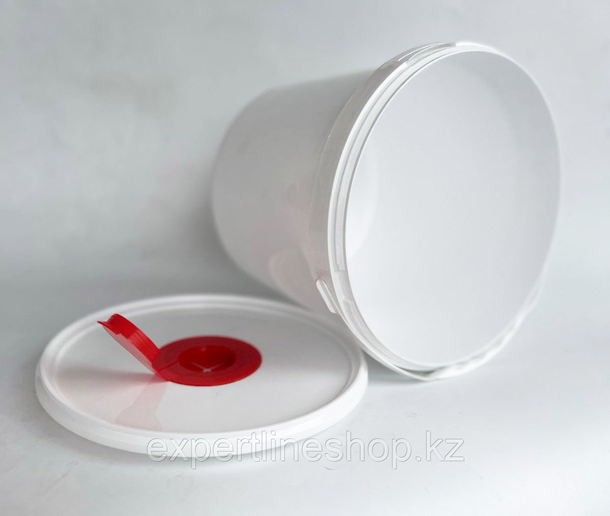 Ведро-контейнер предназначен для замачивания салфеток с дезинфицирующим раствором. Предварительно в ведро заливается дезинфицирующий раствор и затем туда помещается рулон салфеток из нетканого материала спанлейс. Затем, салфетка вытягивается из отверстия в крышке, уже пропитанная раствором, готовая для протирания поверхностей.Заправляется салфетками (протирочные материалы) в рулоне 200 штук.